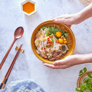 Pho: This Vietnamese soup is made with rice noodles, beef or chicken broth, and a variety of herbs and spices.